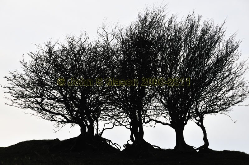 Above the northern side of the Dysinni Valley, gnarled hawthorns stand winter-back against the Westerlies.