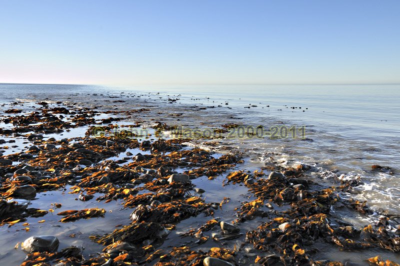 ![]() On Sarn Cynfelyn at low tide, looking straight out to sea. The kelp-zone gives way in the deeper water to coralline red weed: it's a popular boat-angling area as the rough ground attracts a wide range of species including black sea-bream. Product number 011137e. Email me to enquire about this image: click HERE. |