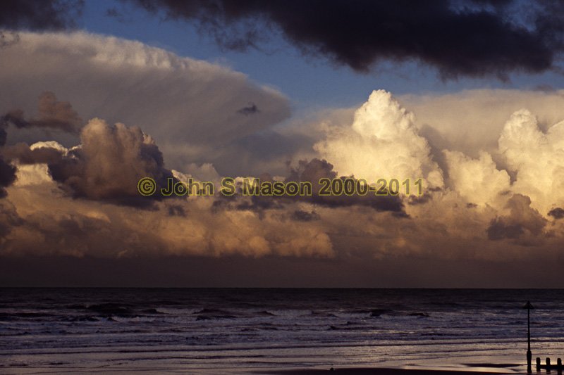 ![]() At sunrise in late November 2005 on Borth Beach, with a line of thunderstorms moving N-S offshore. The storms went on to dump several inches of snow over SW Wales and SW England, and a lad sledging in Pembrokeshire's Prescelli Hills was seriously injured when he was struck by lightning. Product number 2000-2009104. Email me to enquire about this image: click HERE. |