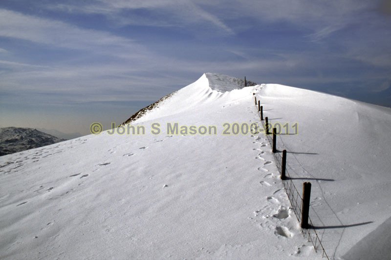 The Arans: approaching Drws-Bach in deep drifted snow.