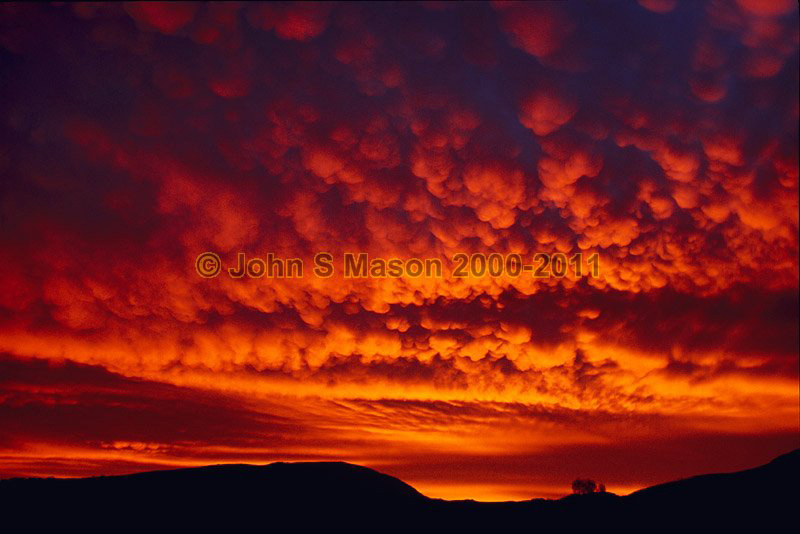 ![]() The most bizarre sunrise I have ever seen! Mammatus hangs from a stratocumulus-deck whilst the sun - still below the horizon - has broken through to illuminate the lot. Taken on Machynlleth Golf-course, November 2006. Product number 2000-2009383. Email me to enquire about this image: click HERE. |