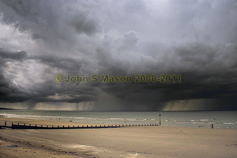 ![]() Thunderstorms just off Borth Beach, late July 2008. A rule amongst storm-chasers is that if you can hear thunder, you're in danger of being struck by lightning. Amongst holidaymakers, the rule seems to be "if you can hear thunder, carry on swimming" - lightning was hitting the water only a mile or two away at the time! Product number 2000-2009616. Email me to enquire about this image: click HERE. |