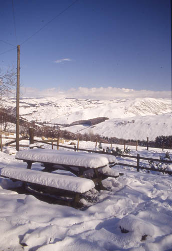 ![]() March 1995 and a heavy overnight snowfall is followed by an "Alpine" day! This is taken from where I lived in the late 1990s, up above Machynlleth. |